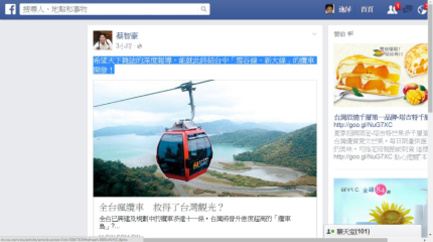 讀『全台瘋纜車 救得了台灣觀光?』有感