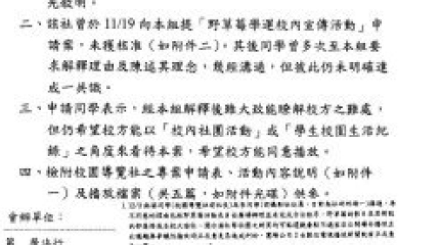 學生自製新聞遭台大活動中心禁播
