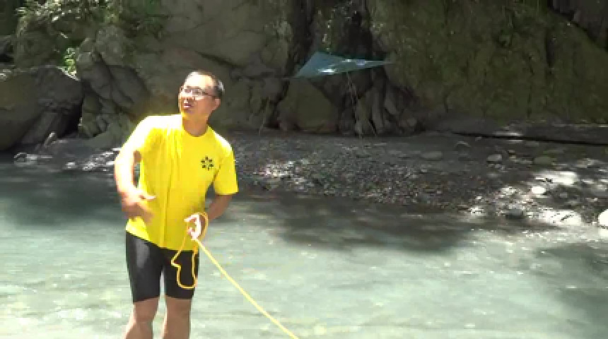 到栗松溫泉須攀岩溯溪,救生拋繩袋絕對不可少