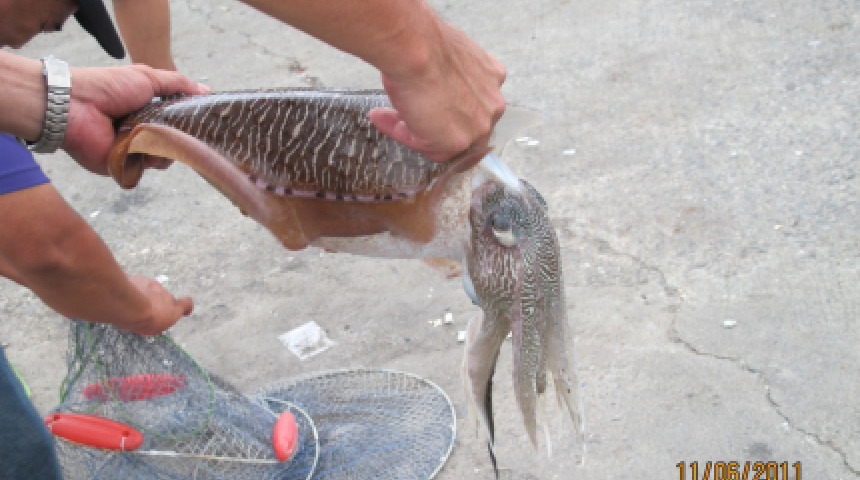深澳港堤防釣現大花枝