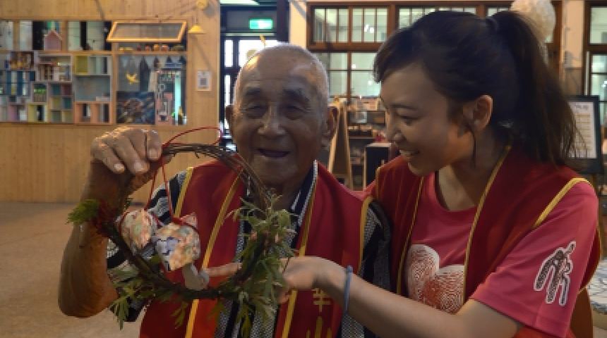 艾草花圈趨噩迎端午 人瑞同歡享團圓