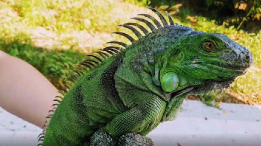 Alien species of green iguana invading farmland