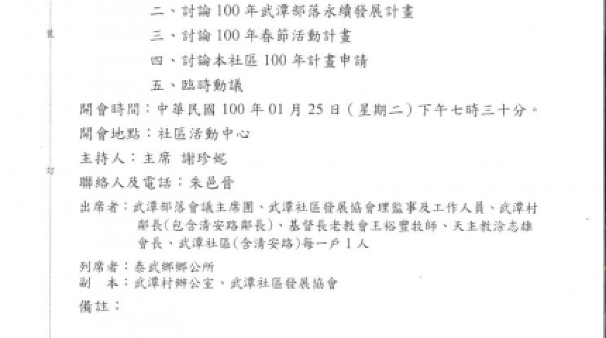 阿布丹部落快訊~召開99年度第三次部落會議