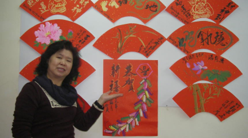 2月12日【新楊平社區大學】《國畫基礎素描》指導老師許瑞月將帶領學員一起參加揮毫獻愛心送春聯活動。