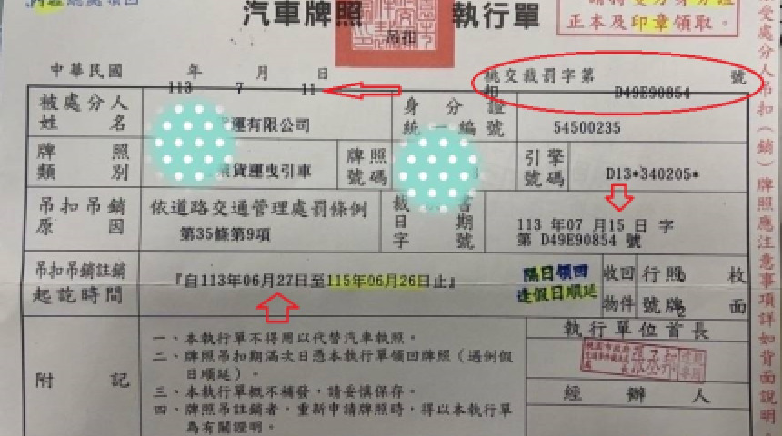 「桃園市政府交通事件裁決處」違法吊扣汽車牌照,請立即發還汽車牌照,供業者能正常營運