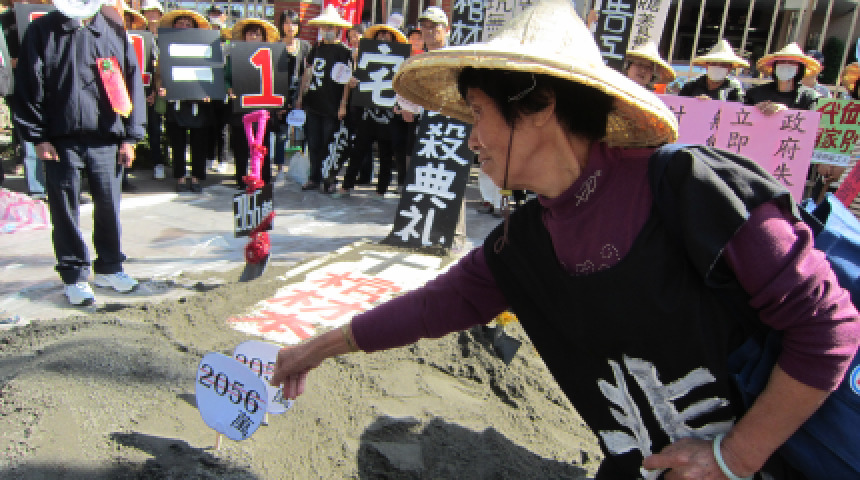 20121114劫貧濟富! 關廠工人護棺材本 促立院刪勞委會提告預算