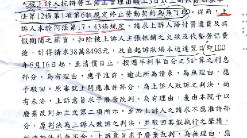 勞上易判決確定