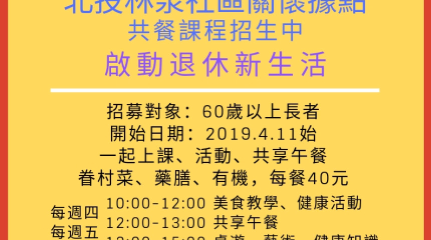 北投中心新村復甦術實習/志工招募開跑囉!
