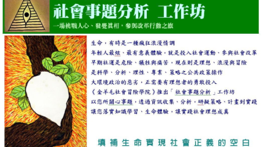 《金羊毛社會冒險學院》社會事題分析工作坊 招生