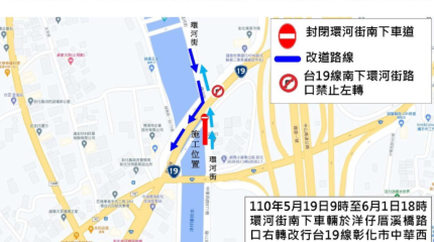 彰化市中華西路與環河街路口伸縮縫施工 5/19起用路人留意
