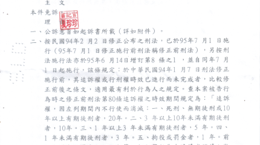 讚許檢察官古慧珍的睿智和認真負責,『起訴』後『免訴判決』獨留『沉冤莫白』遺憾誰之過!