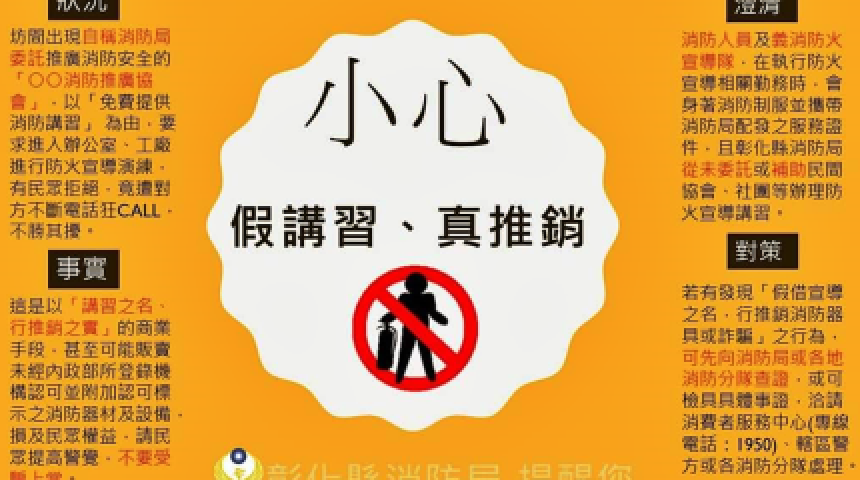 消防假講習真推銷 彰化縣消防局提醒民眾勿受騙上當