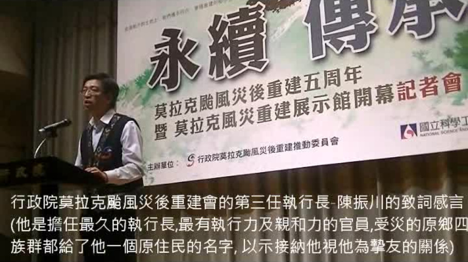 八八莫拉克風災重建5周年謝幕系列報導「永續.傳承」莫拉克風災重建五周年暨「風災重建(教育)展示館」起用啟用記者會執行長-陳振川的感言錄(2-2)