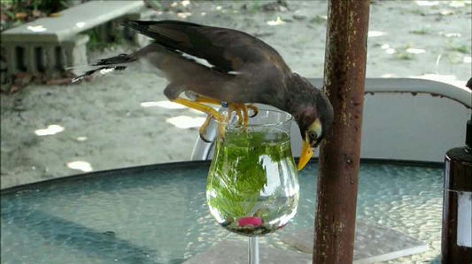 八哥想吃高腳杯裡的小魚-見聞分享
