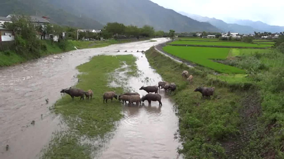 紅石溪水暴漲 牛群被困溪中