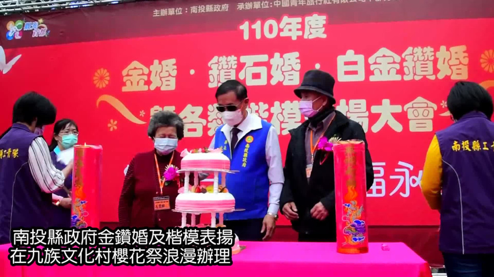 南投縣政府辦理110年度金鑽婚及楷模表揚,櫻花樹下浪漫的百年之約!