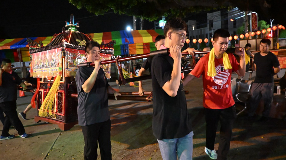 花壇白沙坑文德宮神轎班與三通鼓班有模有樣,無形文化資產有青年踴躍參與的感動!