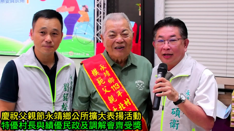 永靖鄉113年父親節慶祝表揚活動,模範父親與特優村長及績優民政人與調解委員上台受獎!
