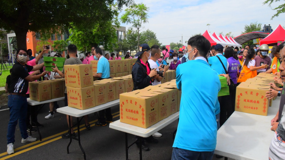 台灣護聖宮40呎貨櫃車開到埔心,媽祖的愛心捐助弱勢家庭!