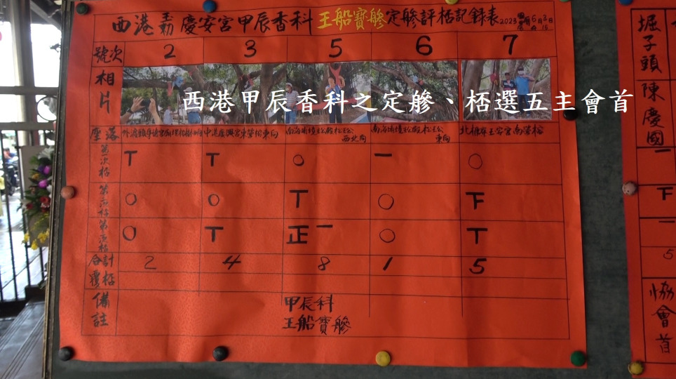 西港甲辰香科之定(舟參)、桮選五主會首