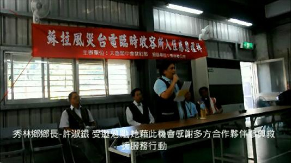 蘇拉颱風災後花蓮秀林鄉和中部落入住臨時收容中心入住感恩禮拜