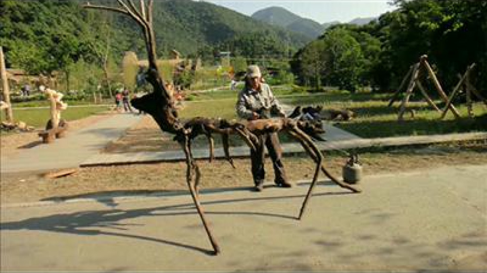梅花鹿漂流木燒雕藝術