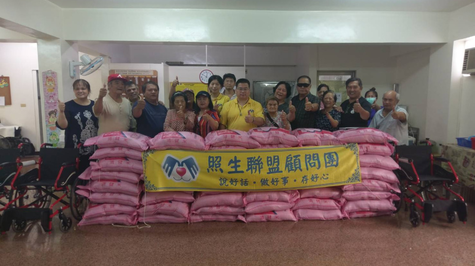 照生會貓狗119愛心有加,捐贈教會重殘重病教友,生活物資,全新輪椅、上百包白米