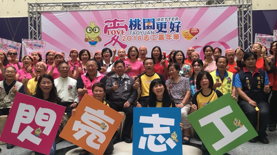 桃園市107年志工嘉年華活動記者會,表揚今年12位志工獲選桃園市閃亮志工