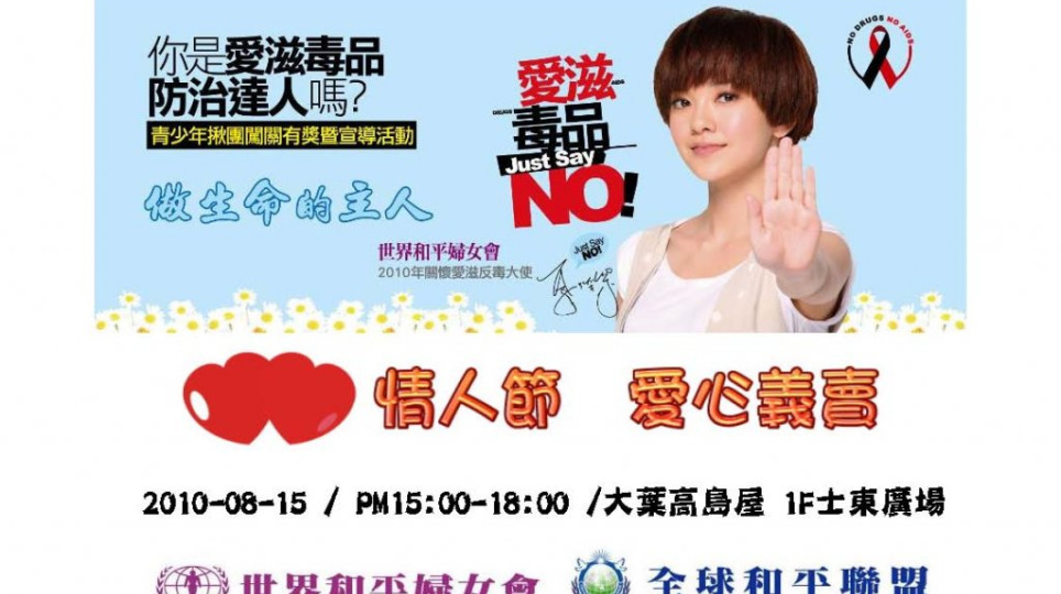 郭采潔與世界和平婦女會邀請青少年 大聲說 愛滋毒品 JUST SAY NO